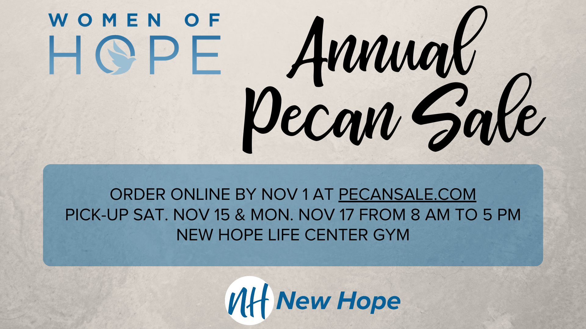 Women of Hope Circles sells just-picked, fresh orchard-shelled pecans for our annual fundraiser. The profits support mission projects at the church, in the community, and internationally.